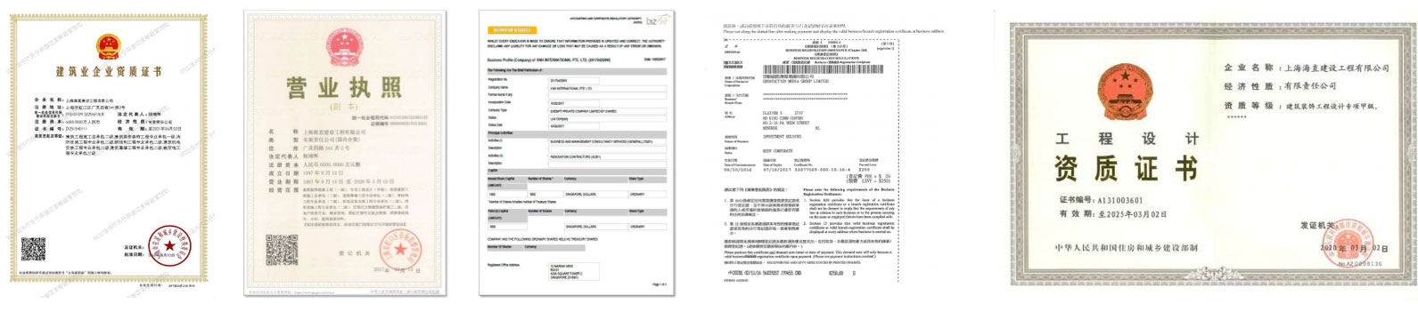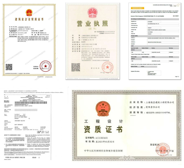 1.建筑施工总承包二级 2.建筑装修装饰工程专业承包一级 3.建筑装饰工程设计专项甲级 4.消防设施工程专业承包二级 5.钢结构工程专业承包二级 6.建筑机电安装工程专业承包二级了 7.建筑幕墙工程专业承包二级