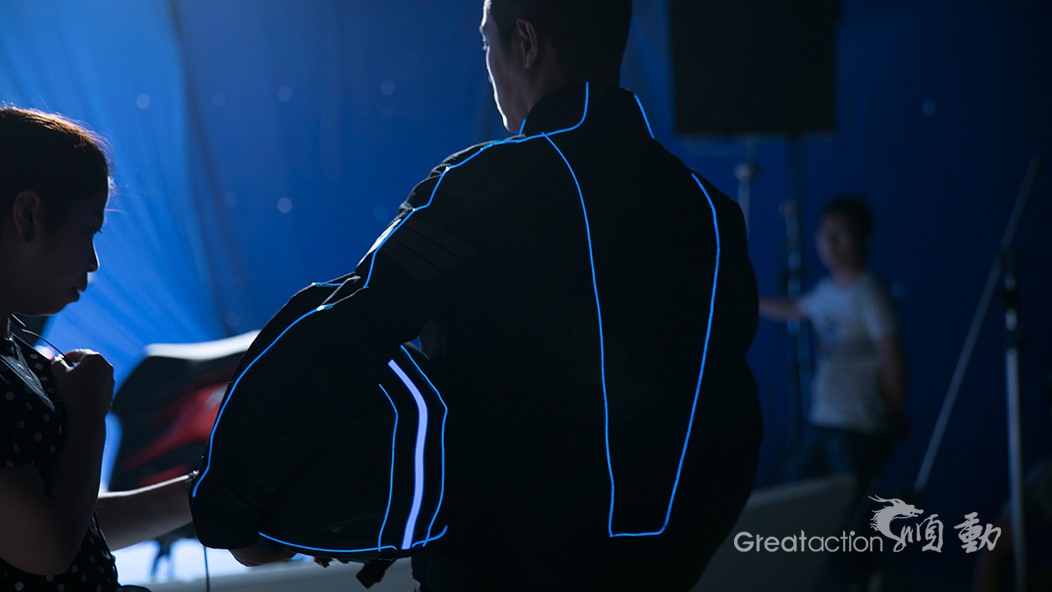 这条本田摩托K80的TVC拍摄,是我们顺动国际传媒的摄制组做了很多前期准备工作的。充满科技感的画风让我们在服装和道具上颇费心思,一条条冷光线缝制在男主角的机车服上。而在拍摄路跑时,我们还使用了当下最为流行的VR拍摄技术,成片相当令人惊艳。